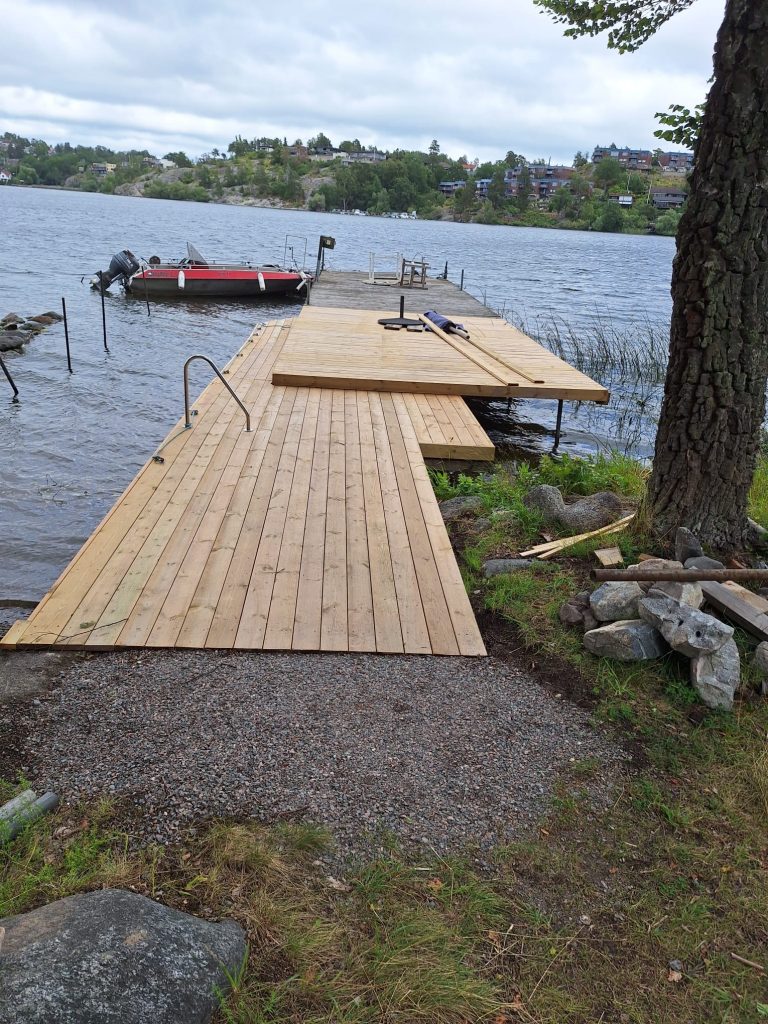 Pappa har renoverat bryggan, den har blivit näst intill dubbelt så stor som den var innan. Nästa vår kommer vi att olja in den nya delen, det hanns inte med i år…Vi har kapat träd, snyggat till våran häck, fixat i trädgården, ja vad är det inte som vi har gjort!